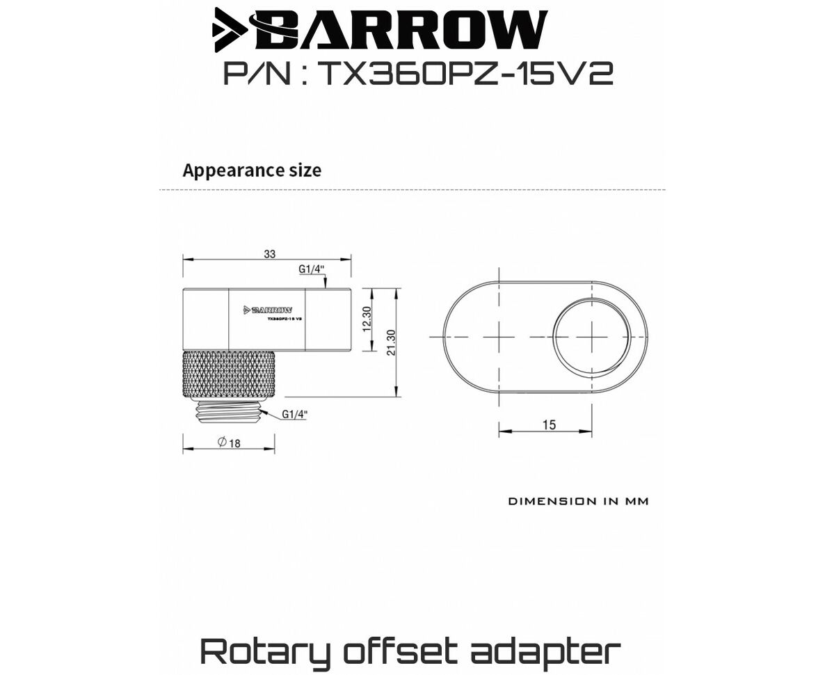 Адаптер Barrow G1/4 360°rotation offset adapter 15MM, TX360PZ-15 V2 - Black