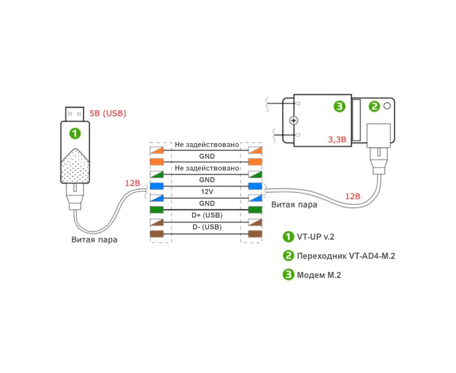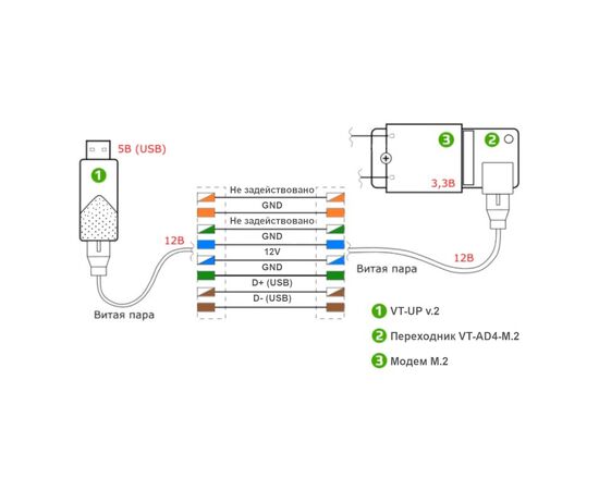 Адаптер VT-AD4-M.2 не получится подключить к роутеру без USB-порта, необходимо обязательно использовать адаптер VT-UP v.2 из комплекта, а также качественный кабель для подключения.