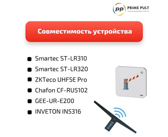 Совместимость со считывателями: Прибор реализует базовый протокол UHF EPC Gen 2 и совместим с подавляющим большинством считывателей, представленных на рынке. В редких случаях, когда считыватель использует нестандартные или специализированные расширения протокола, полная совместимость не гарантируется.