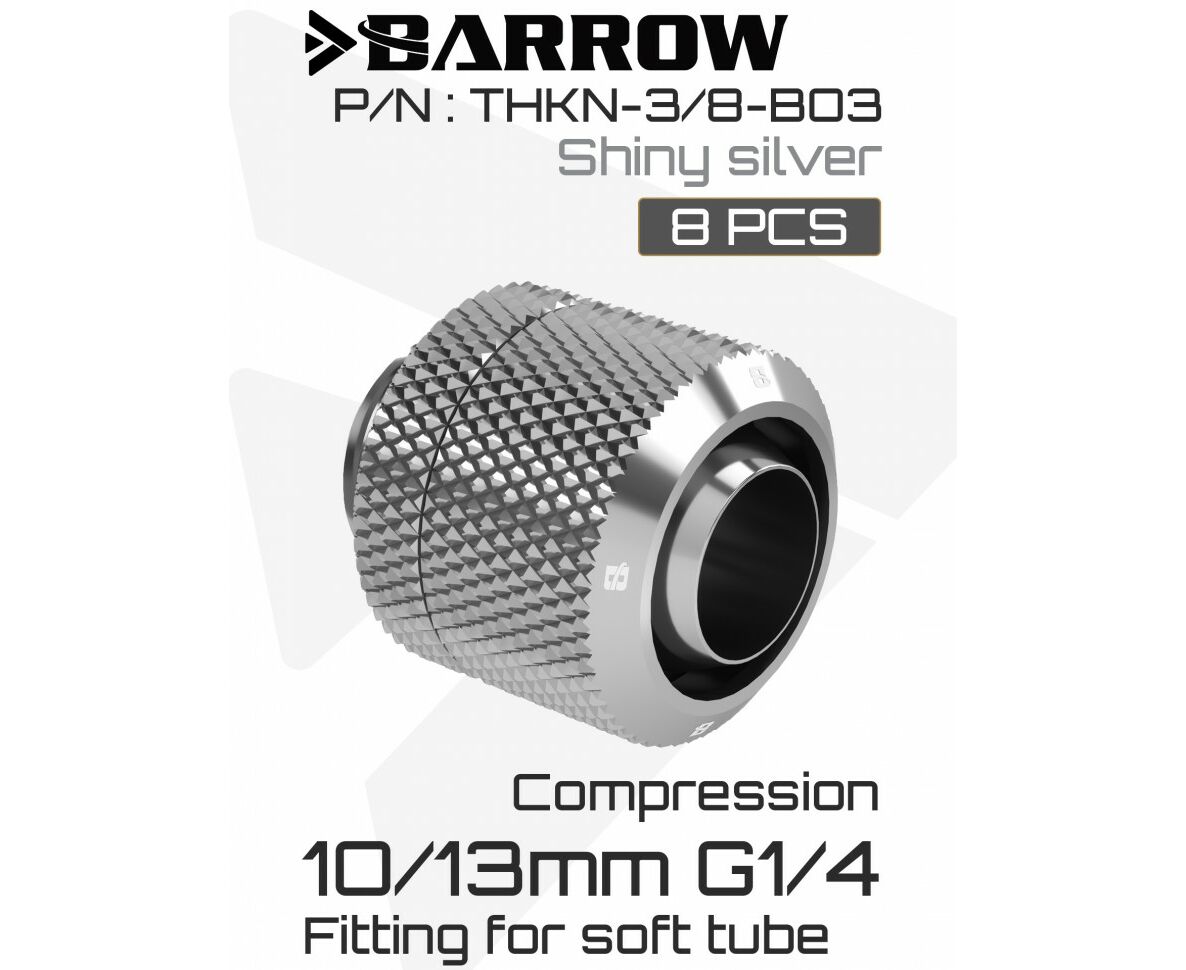 Фитинг для шланга 10/13 Barrow Compression Fitting(ID3/8-OD1/2)Soft Tubing 8шт - Shiny Silver