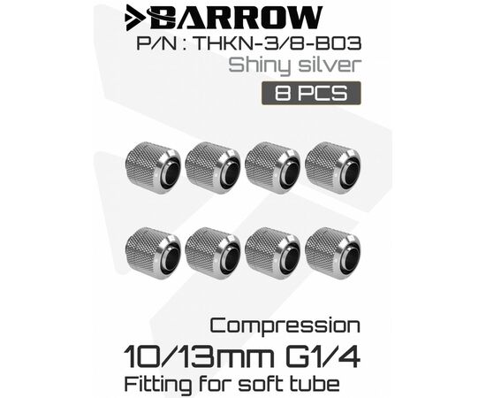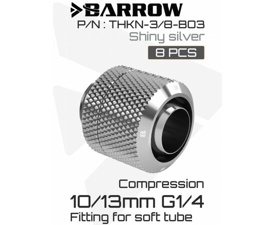 Фитинг для шланга 10/13 Barrow Compression Fitting(ID3/8-OD1/2)Soft Tubing 8шт - Shiny Silver