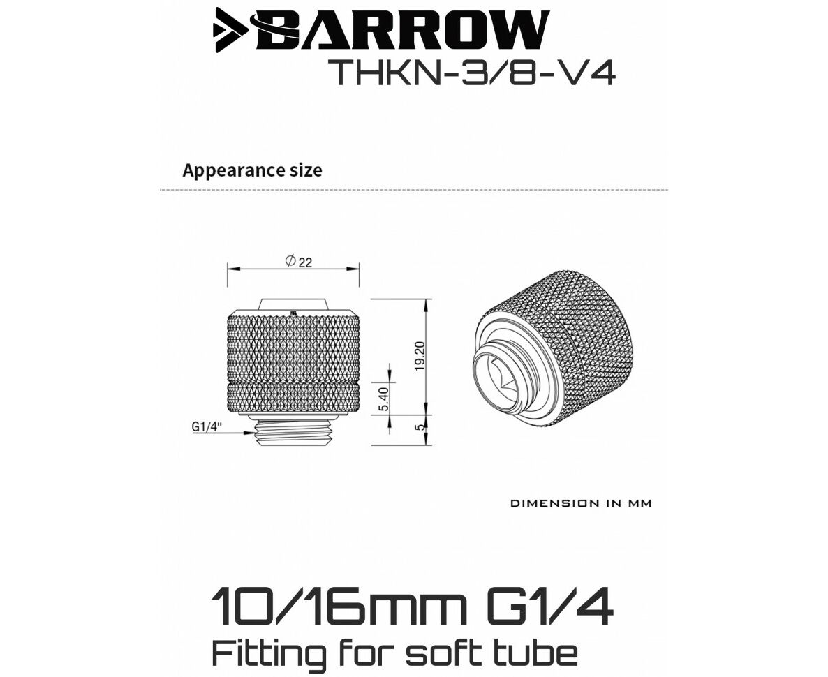 Фитинг для шланга 10/16 Barrow Compression Fitting(ID3/8-OD5/8)Soft Tubing 8шт - Shiny Silver