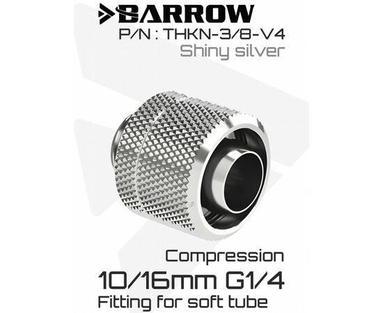 Фитинг для шланга 10/16 Barrow Compression Fitting(ID3/8-OD5/8)Soft Tubing,8шт - Shiny Silver