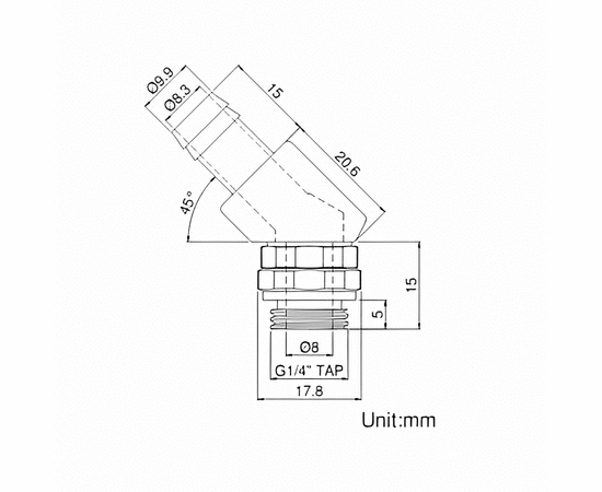 Фитинг угловой Enzotech RHF-G1/4-38-45