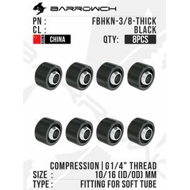 Компрессионный фитинг FREEZEMOD Compression Fitting for 10/13mm Soft Tube, Smooth series, GRGKN-B3, 8шт - Black