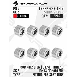 Фитинг для шланга Barrowch Compression Fitting (ID3/8-OD5/8)Soft Tubing, 8шт - Shiny Silver