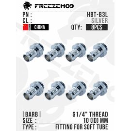 Фитинг ёлочка FREEZEMOD Barb Fitting for 10mm ID Soft Tube, HBT-B3L, 8шт - Silver