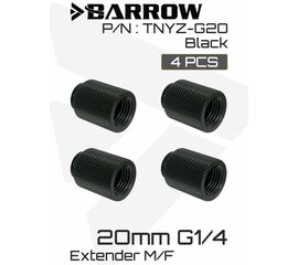 Удлинители 20 мм от компании Barrow идеально подходят для тех случаев, когда необходимо изменить высоту расположения основного фитинга. Спецификация Модель: TNYZ-G20 Материал: Латунь Резьба: G1/4(Male) - G1/4(Female) Цвет: Черный Размеры: Длина резьбы-5мм, Рабочая часть - 20мм, Диаметр - 18мм. Комплектация: 4шт.