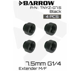 Удлинители на 7.5 мм от компании BARROW идеально подходят для тех случаев, когда необходимо изменить высоту расположения основного фитинга. Спецификация Модель: TNYZ-G7.5 Материал: Латунь Резьба: G1/4(Male) - G1/4(Female) Цвет: Черный Размеры: Длина резьбы-5мм, общая длина фитинга- 12.5мм, рабочая часть - 7.5мм, диаметр - 18мм. Комплектация: 4шт.