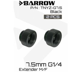 Удлинители на 7.5 мм от компании BARROW идеально подходят для тех случаев, когда необходимо изменить высоту расположения основного фитинга. Спецификация Модель: TNYZ-G7.5 Материал: Латунь Резьба: G1/4(Male) - G1/4(Female) Цвет: Черный Размеры: Длина резьбы-5мм, общая длина фитинга- 12.5мм, рабочая часть - 7.5мм, диаметр - 18мм. Комплектация: 2шт.