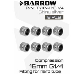 Компрессионный фитинг Barrow Compression Fitting (Extended Edition) - 16mm OD Rigid Tubing, 8шт. - Shiny Silver