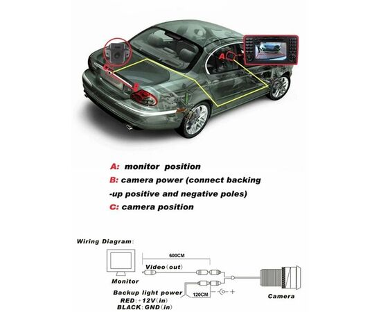 3. Подключите шнур питания (красный и черный) к сигнализатору заднего хода автомобильного шнура питания.