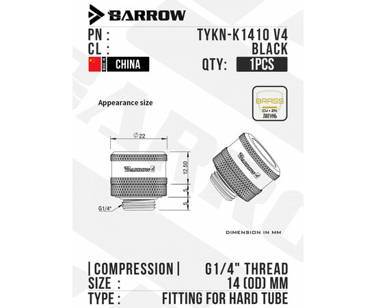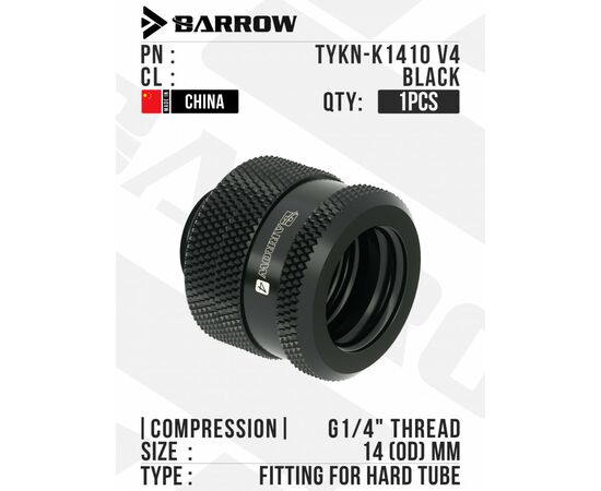 Компрессионный фитинг Barrow Compression Fitting - 14mm OD Rigid Tubing - Black