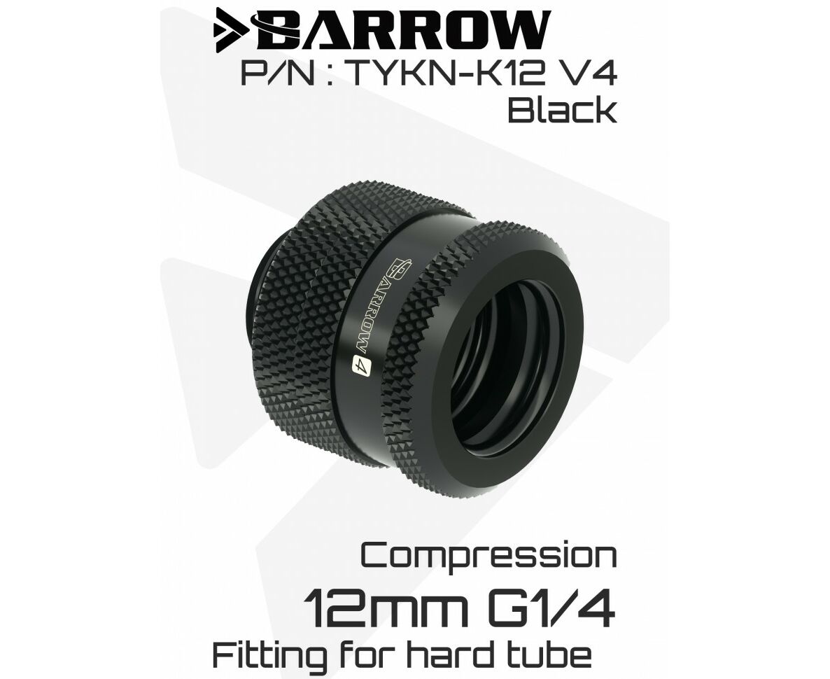 Компрессионный фитинг Barrow Compression Fitting (Extended Edition) - 12mm OD Rigid Tubing - Black