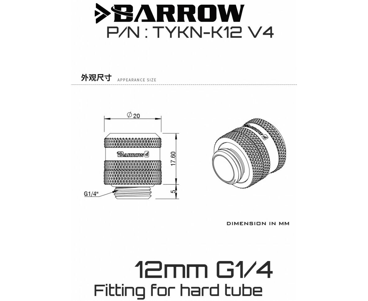 Компрессионный фитинг Barrow Compression Fitting (Extended Edition) - 12mm OD Rigid Tubing - Shiny silver
