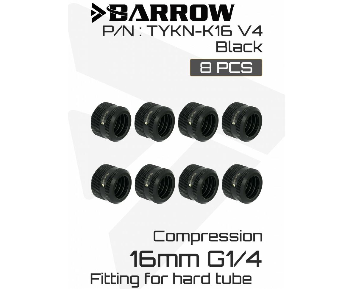 Компрессионный фитинг Barrow Compression Fitting (Extended Edition) - 16mm OD Rigid Tubing, 8шт. - Black