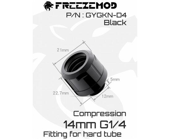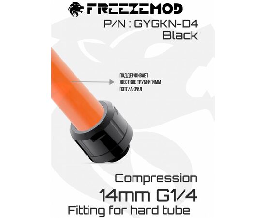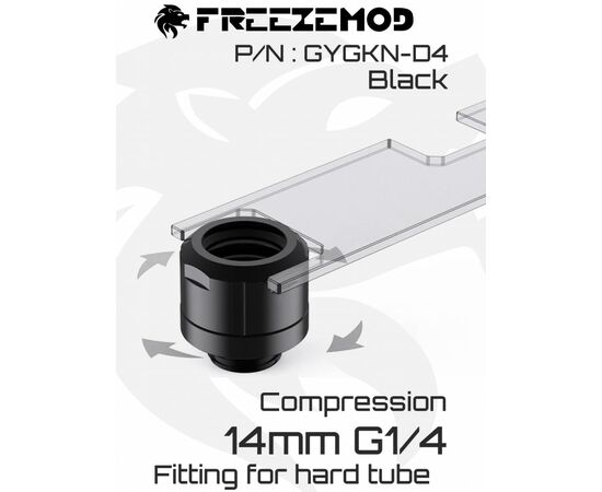 Компрессионный фитинг FREEZEMOD Compression Fitting for 14mm OD Hard Tube, Smooth series, GYGKN-D4 - Black