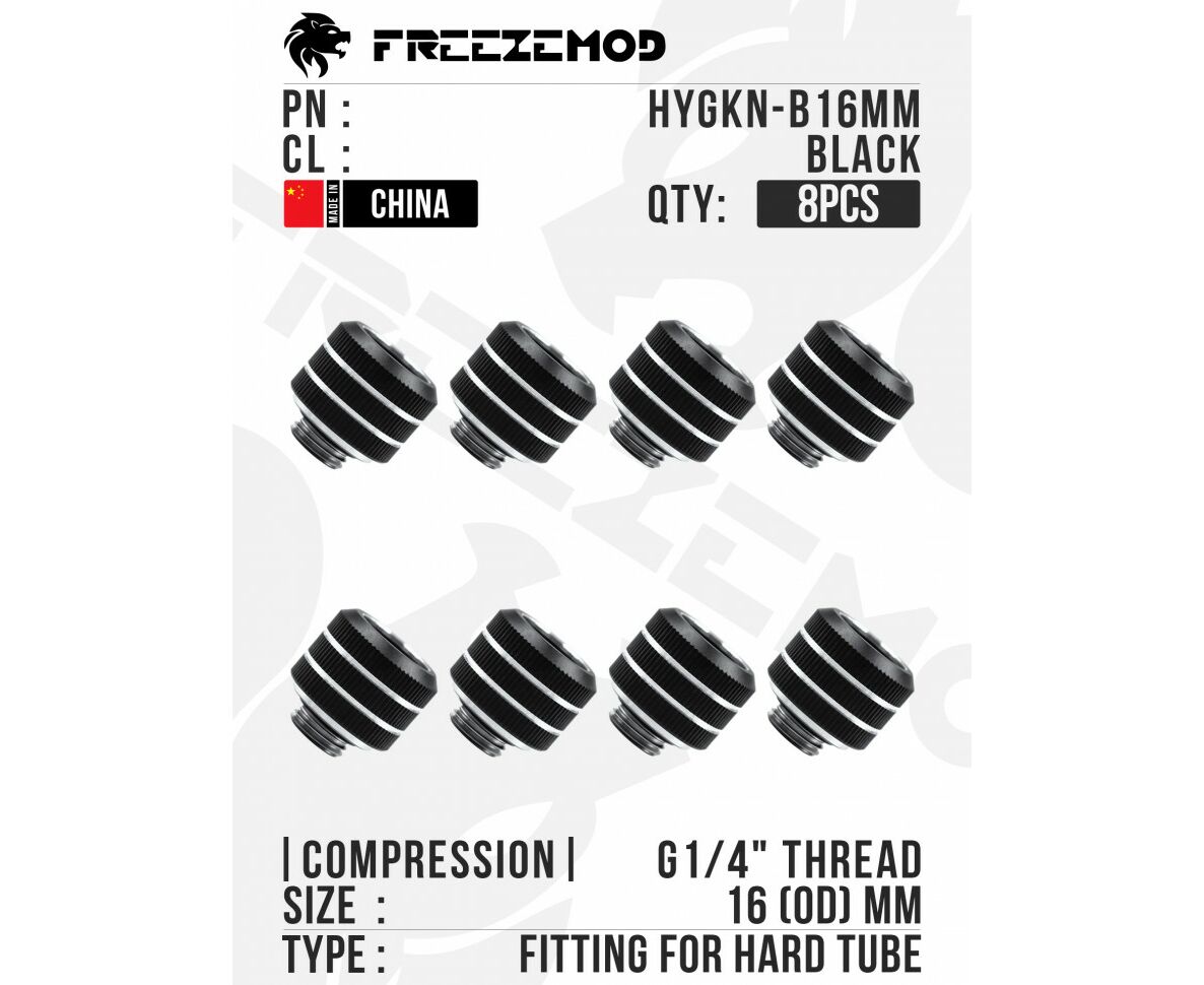 Компрессионный фитинг FREEZEMOD Compression Fitting for 16mm OD Hard Tube, Anti-slip, HYGKN-B16MM, 8шт. - Black