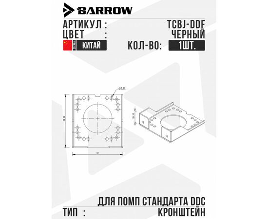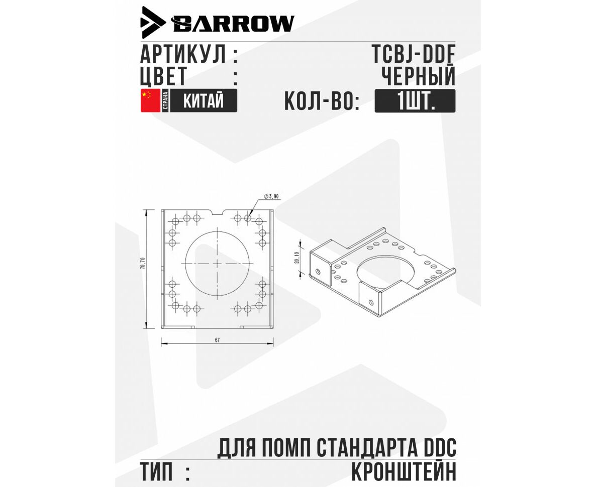Кронштейн для установки помп стандарта DDC. Подходит как самостоятельный крепеж, так и для дополнения кронштейнов BARROW TCBJ-P и TCBJ-G..