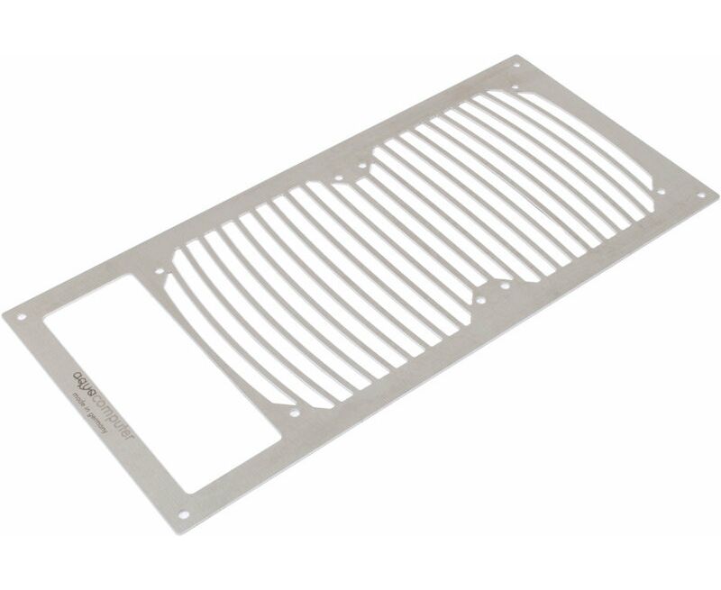 Эта монтажная пластина позволяет установить радиатор Aqua Computer airplex modularity system 240 mm в корпус ПК. Для этого в корпусе необходимо вырезать установочное отверстие, желательно в верхней крышке. Монтажная пластина при этом скроет возможные неровности обработки, и радиатор можно будет установить под крышкой с помощью 120-мм вентиляторов. Вырез позволяет легко получить доступ к резервуару, если он используется с радиаторами, оснащенными насосным модулем.