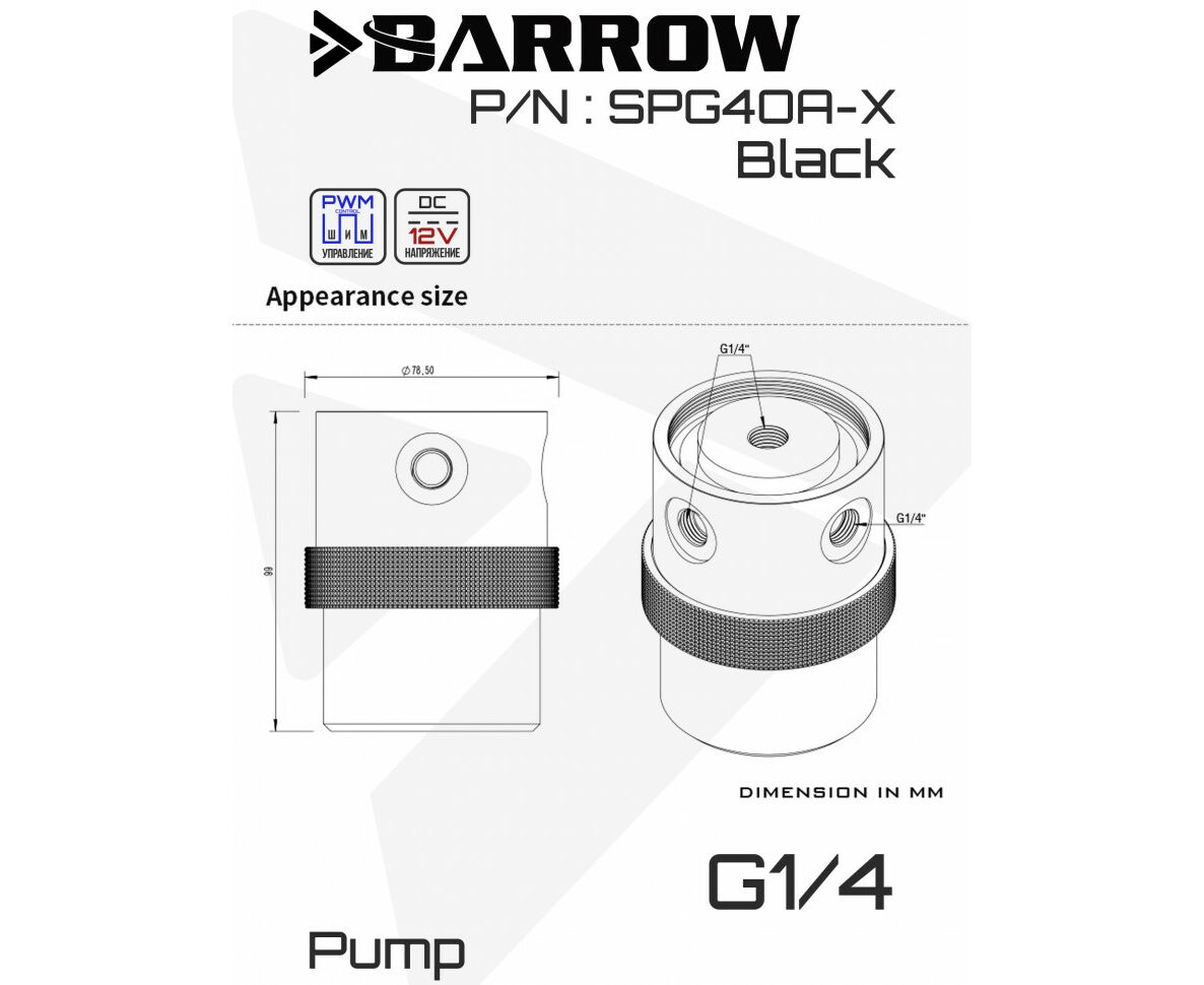 Насос Barrow pump for watercooling -PWM-18W(full coverage), SPG40A-X - Black