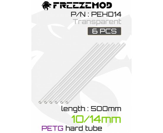 ПЭТГ трубка FREEZEMOD PETG 10*14mm High Quality Hard Tube, PEHD14, 6шт. - Transparent