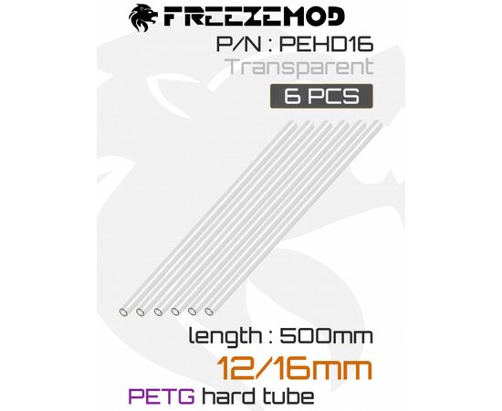 ПЭТГ трубка FREEZEMOD PETG 12*16mm High Quality Hard Tube, PEHD16, 6шт. - Transparent