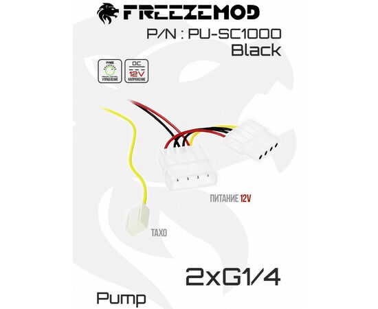 Помпа PU-SC1000 от FREEZEMOD превосходит модель PU-SC600 того же бренда по производительности. По конструкции она похожа на помпы EHEIM. Устройство работает от напряжения 12 В и оснащено съемным кронштейном для экономии места. Питание насоса подключается через стандартный разъем Molex 4 Pin. Провод 3Pin присоединяется к разъему Fan на материнской плате для мониторинга частоты вращения. Скорость насоса регулируется желтым регулятором на корпусе, как у некоторых моделей D5. Помпа имеет различные защитные функции: от сухого хода, блокировки ротора и перенапряжения.