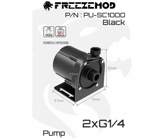 Помпа FREEZEMOD DC water pump, with bracket, PU-SC1000 - Black