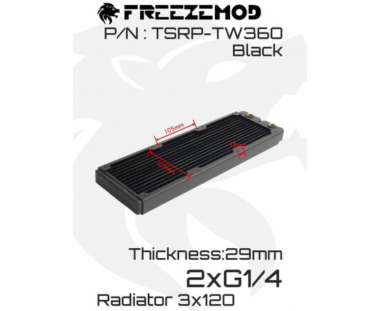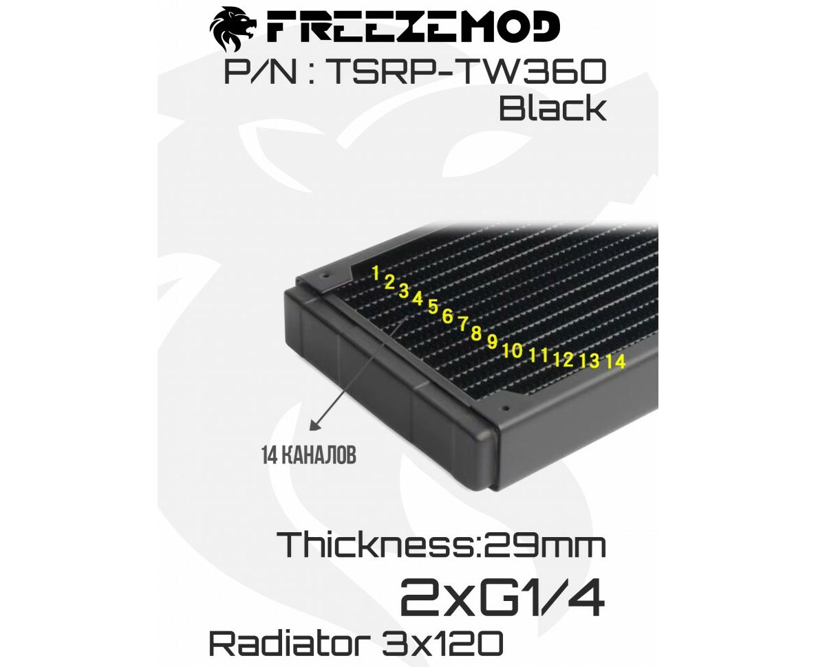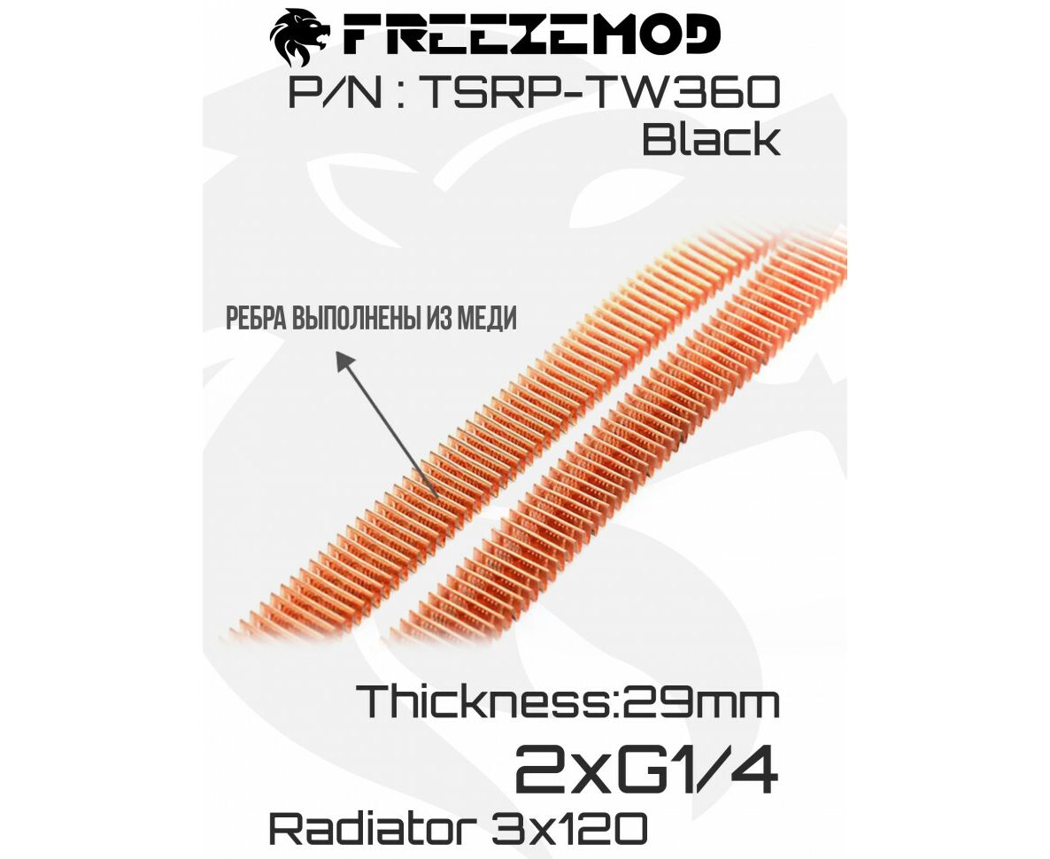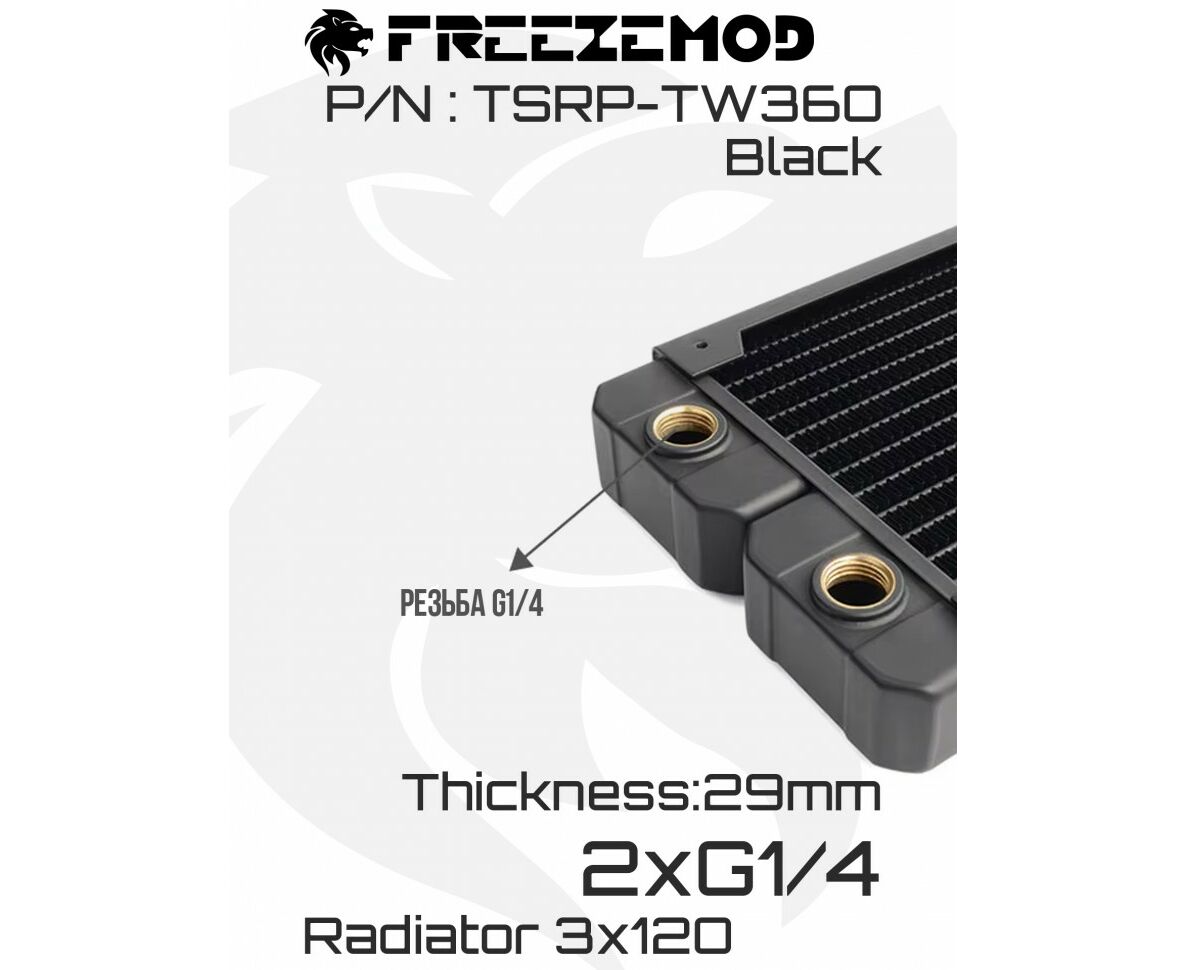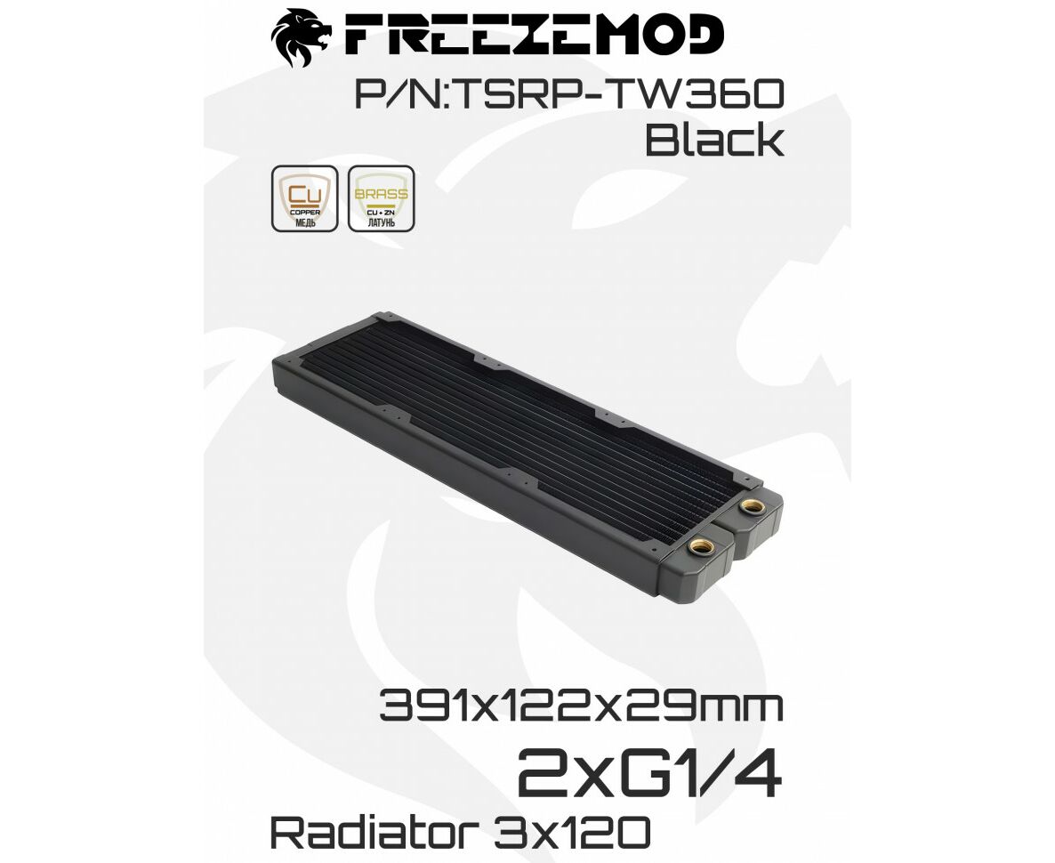 Радиатор Freezemod TSRP-TW360 в черном цвете — отличное решение для создания системы водяного охлаждения компьютера. Благодаря своей небольшой толщине он легко впишется в корпус любого размера.