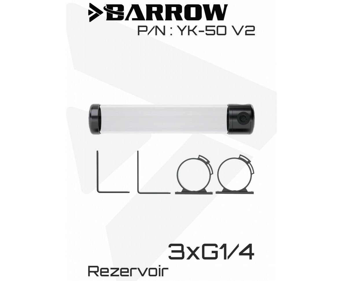 Резервуар Barrow серии YK-50 V2 — элегантное и функциональное решение для систем водяного охлаждения в стиле минимализма. Выполненный в классической трубчатой форме, он сочетает в себе лаконичный дизайн и продуманную конструкцию: внутренний диаметр трубки — 50 мм, а общий внешний диаметр корпуса — всего 53,2 мм, что делает резервуар компактным, но вместительным. В комплекте предусмотрены два Г-образных крепления и два надёжных классических хомута — это позволяет гибко разместить резервуар практически в любом корпусе. Простота установки, безупречное качество сборки и универсальность монтажа делают YK-50 V2 идеальным выбором как для новичков, так и для опытных энтузиастов кастомных систем охлаждения.