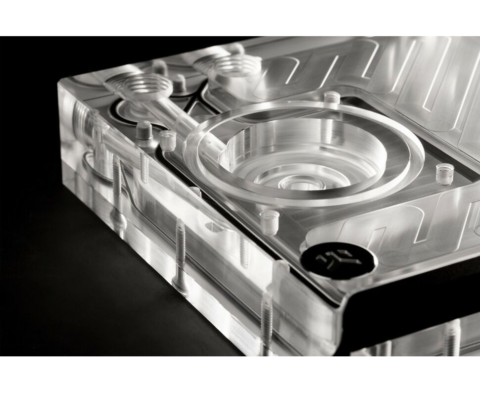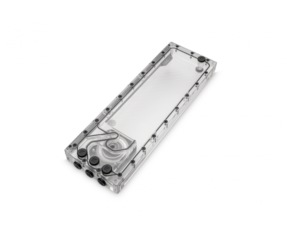 Модуль имеет стандартные монтажные отверстия под вентиляторы 120 мм, что обеспечивает максимальную гибкость при установке. Резервуар оснащён в общей сложности восемью портами G1/4", позволяя пользователю выбрать оптимальную конфигурацию контура жидкостного охлаждения.