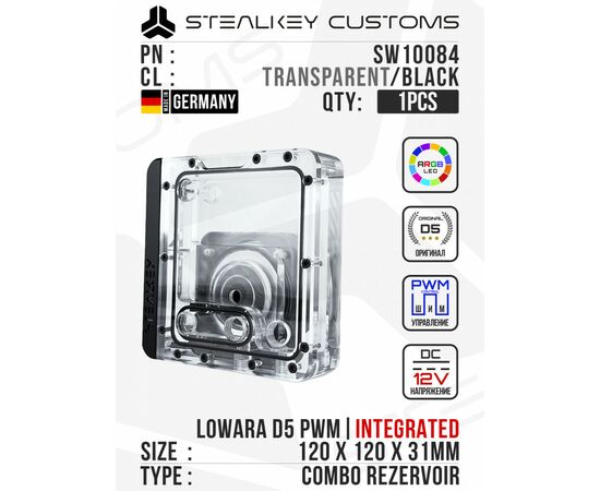 Резервуар с помпой Stealkey-UNI 120 Pump Combo D5 PWM D-RGB - Transparent/Black