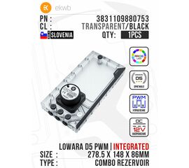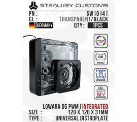 Резервуар с помпой Stealkey-UNI 120D Distroplate D5 PWM D-RGB - Transparent/Black