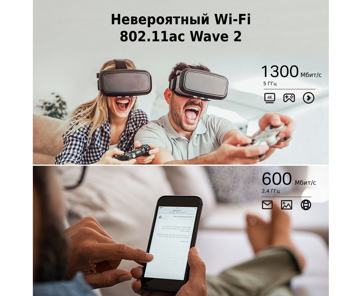 Скорость до 1900 Мбит/с с Wi Fi AC1900