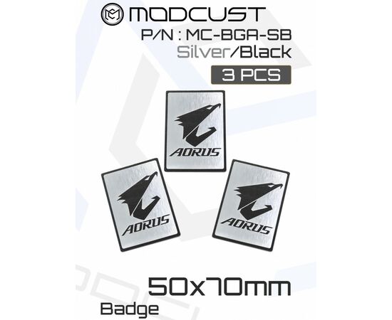 Шильдик ModCust Badge GIGABYTE AORUS 50x70 mm, 3шт. - Silver/Black