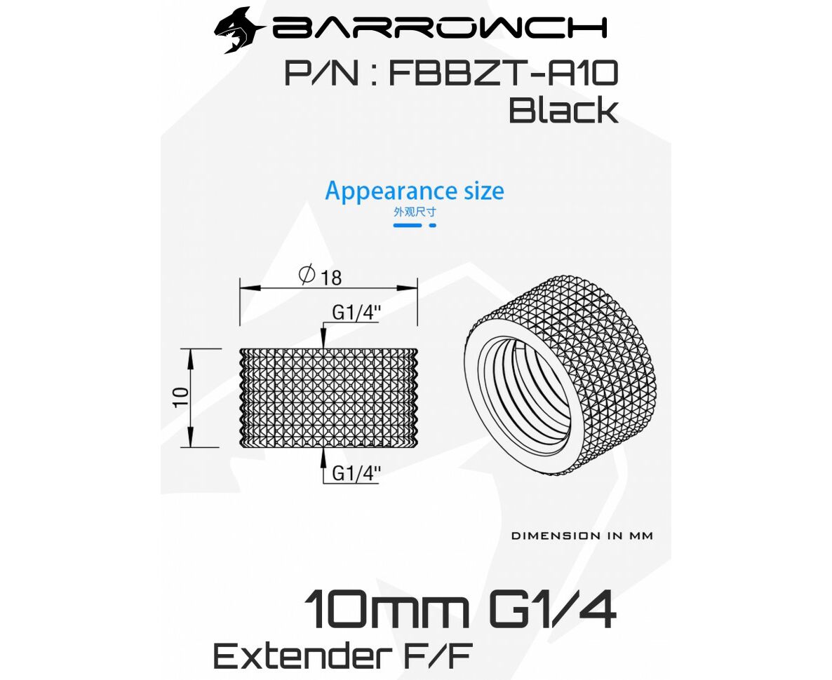 Удлинитель Barrow G1/4 Female to Female Extender -10mm - Black