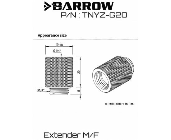 Удлинитель Barrow Male to Female Extender - 20mm - Shiny silver