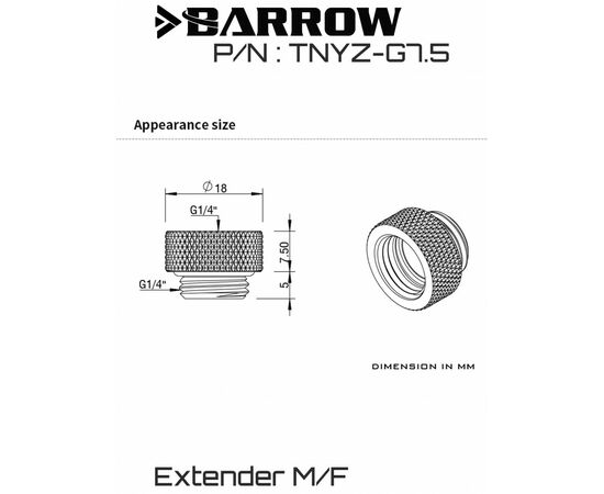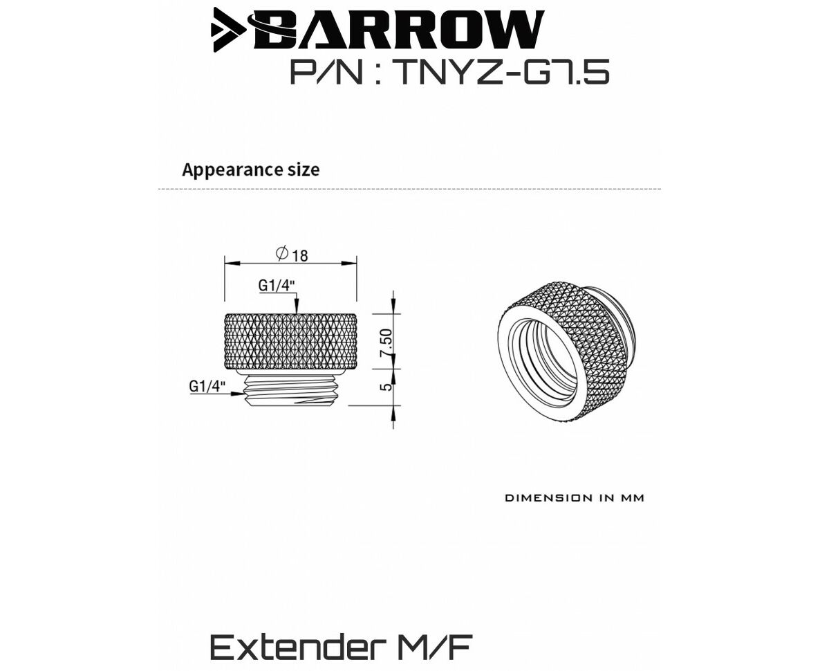 Удлинители на 7.5 мм от компании BARROW идеально подходят для тех случаев, когда необходимо изменить высоту расположения основного фитинга.