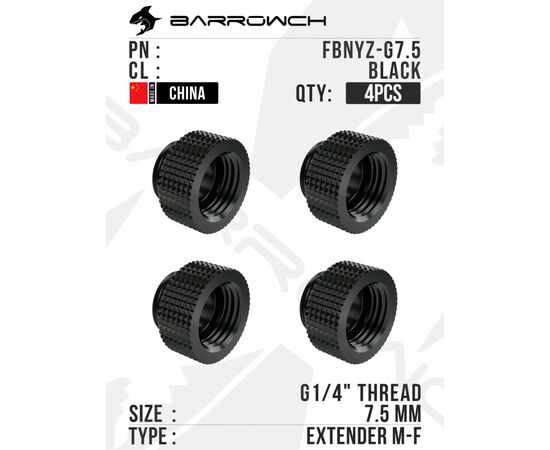 Удлинитель Barrowch FBNYZ-G7,5-BK-4P Male to Female Extender - 7.5mm, 4шт. - Black