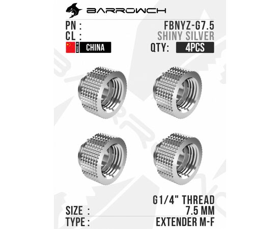 Удлинитель Barrowch FBNYZ-G7,5-SSL-4P Male to Female Extender - 7.5mm, 4шт. - Shiny Silver