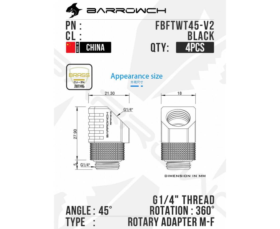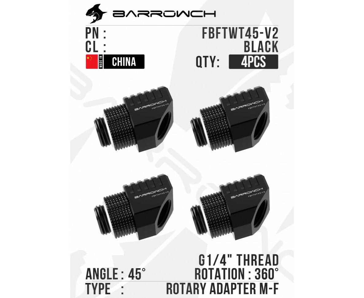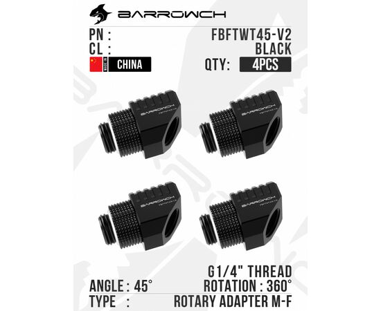 Barrow 45°closed Rotary Adapter (Special Limited) - Black, 4шт.