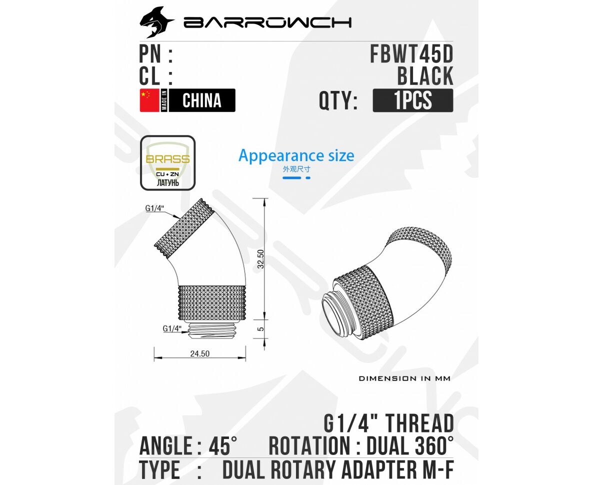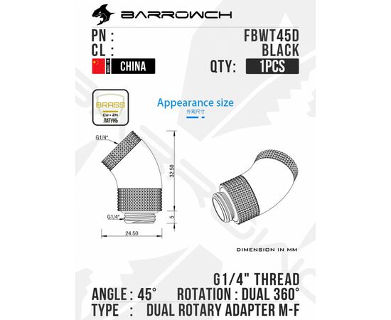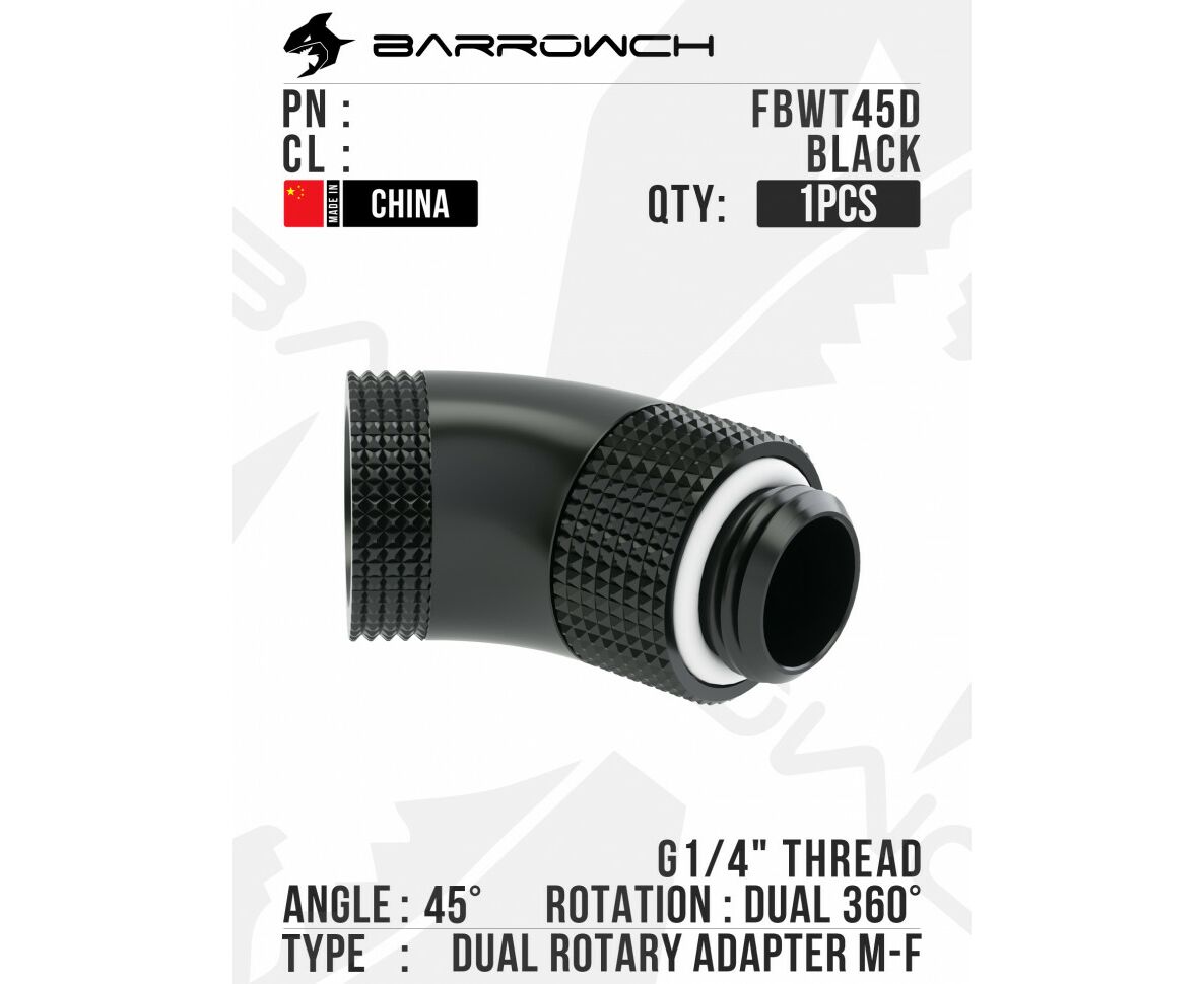 Угловой адаптер Barrow 45°Dual Rotary Adapter ( Male to Female ) - Black