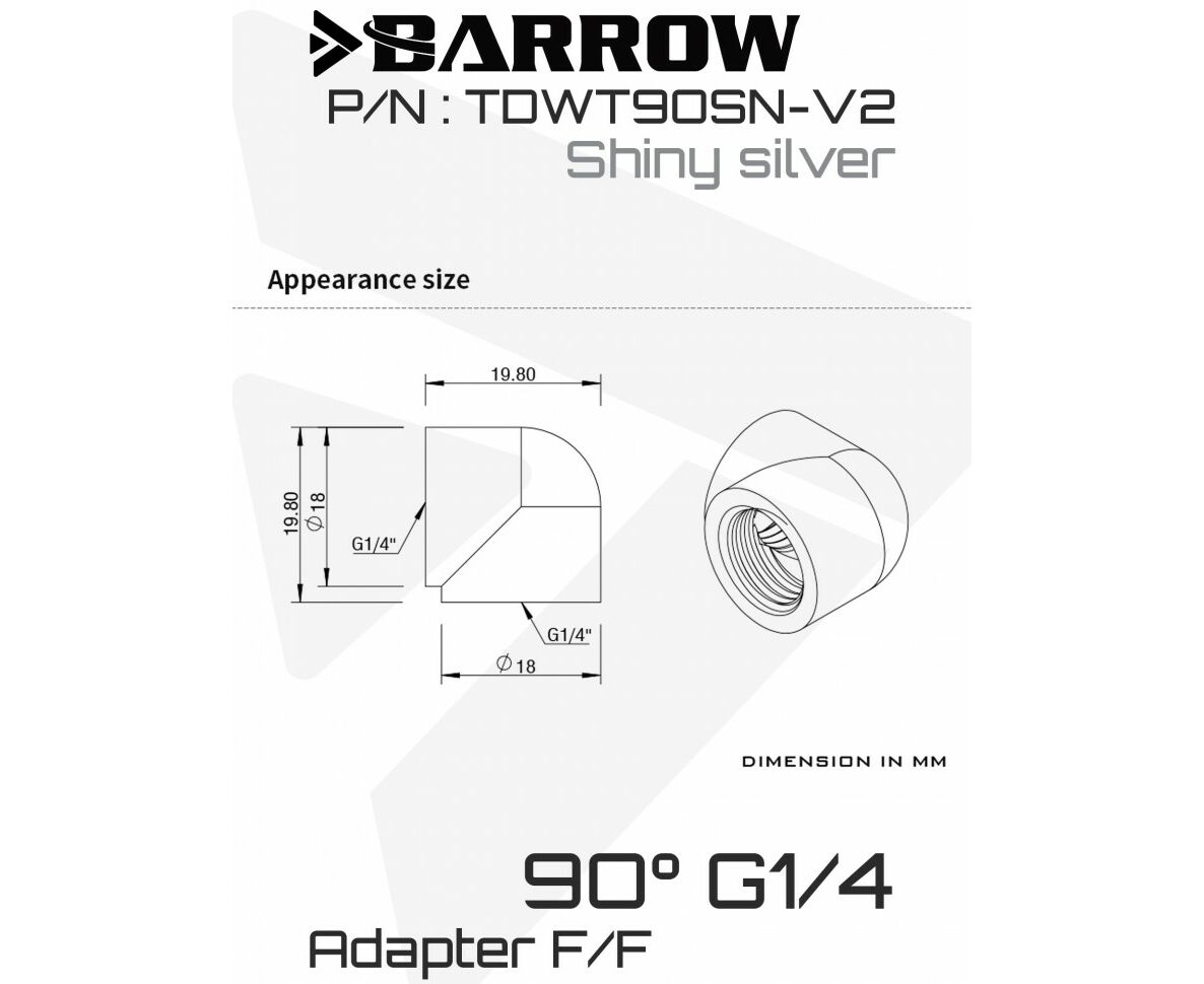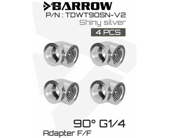 Угловой адаптер Barrow 90°Adapter (Female to Female), 4шт. - Shiny Silver