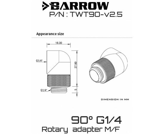 Угловые адаптеры от компании BARROW изготавливаются из высококачественной латуни, а их поверхность надёжно защищена благодаря уникальной технологии двойного гальванического покрытия. Для удобства монтажа на корпус адаптеров нанесена специальная накатка в виде ромбов.
