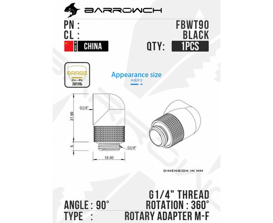 Угловой адаптер Barrowch 90°Rotary Adapter FBWT90-BK (Male to Female) - Black