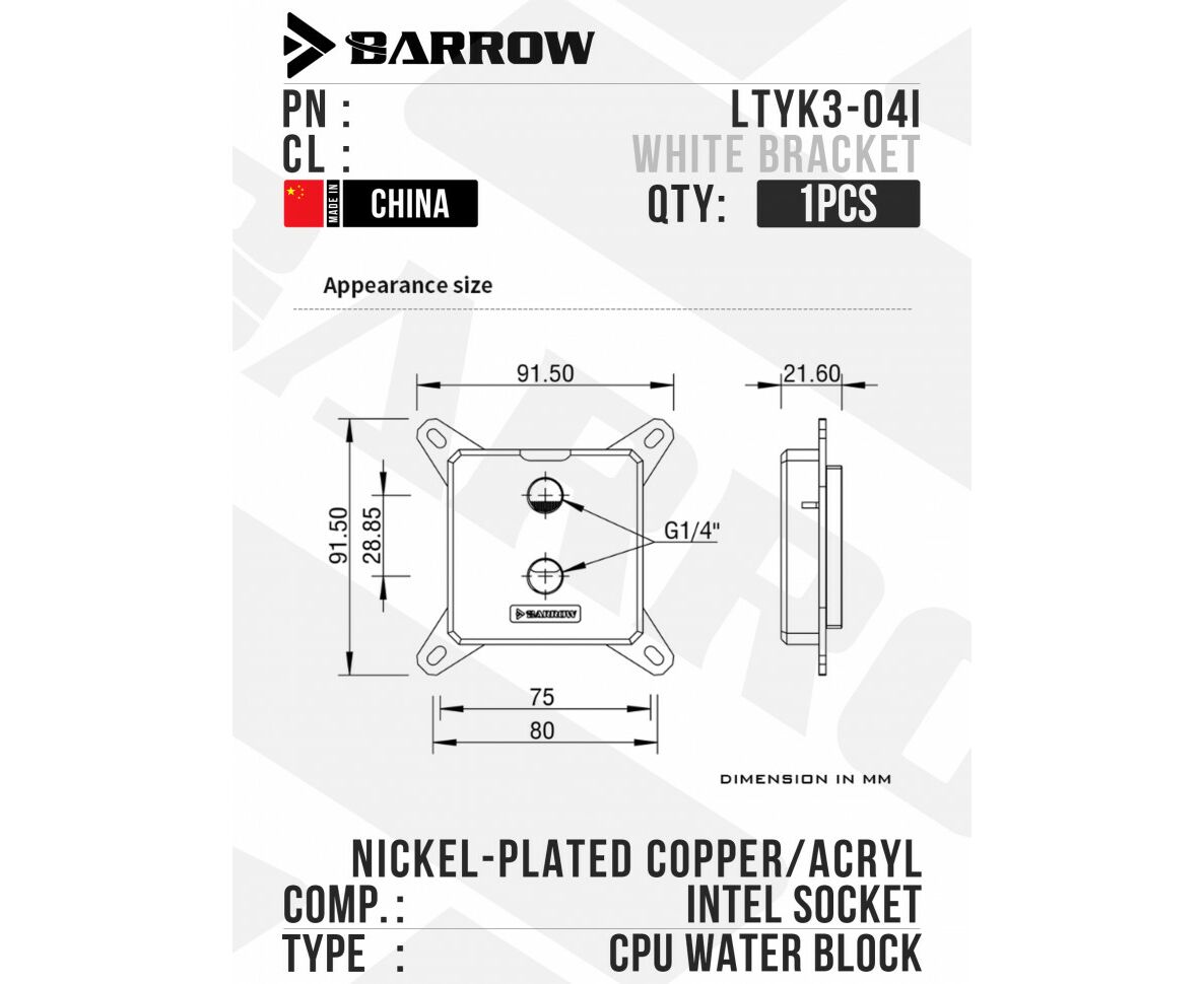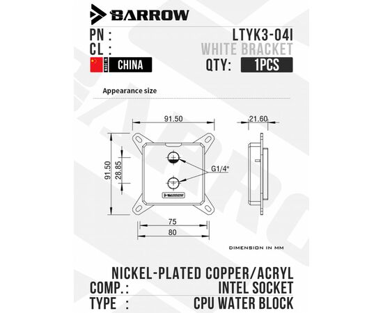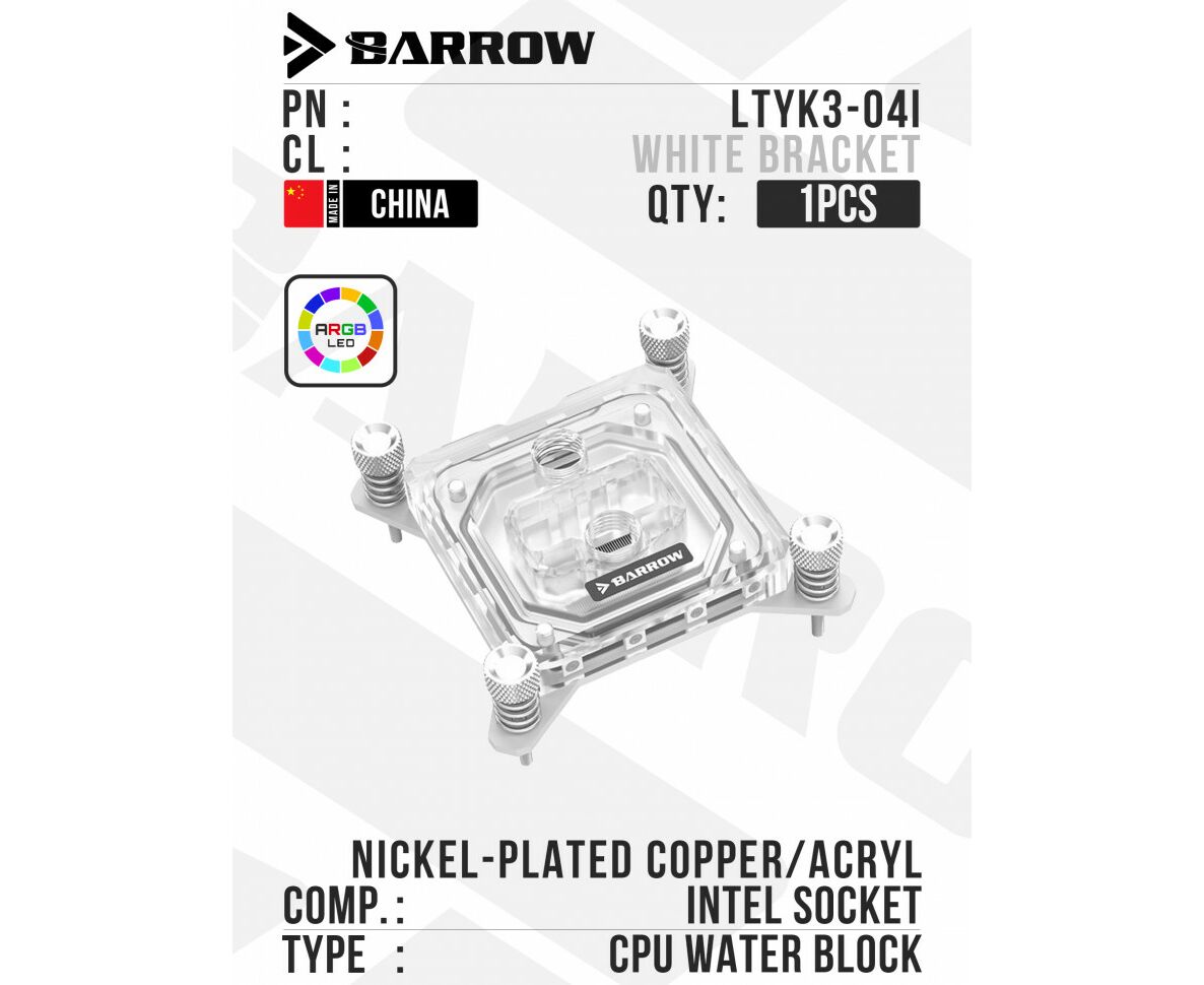 Водоблок для процессора Barrow LTYK3-04I - White Bracket