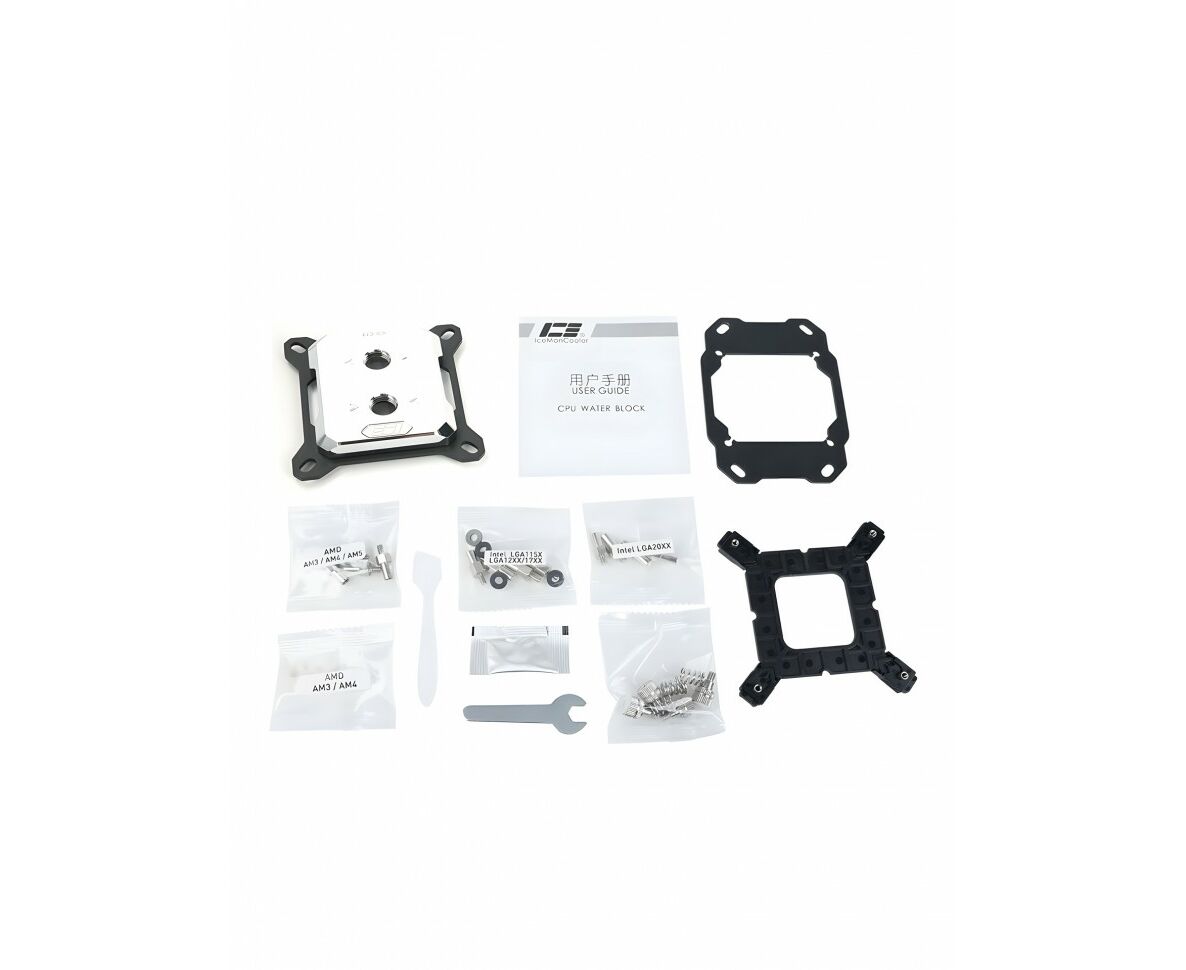 Универсальный полностью медный водоблок от компании IceMan Cooler. Он отличается европейским дизайном и весит 780 граммов, что свидетельствует о высоком качестве изделия. Благодаря сменным рамкам в комплекте, этот водоблок подходит практически для всех сокетов Intel и AMD.