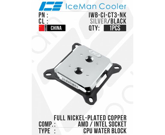 Водоблок для процессора IceMan Cooler ICE-CT3 water block - Full nickel