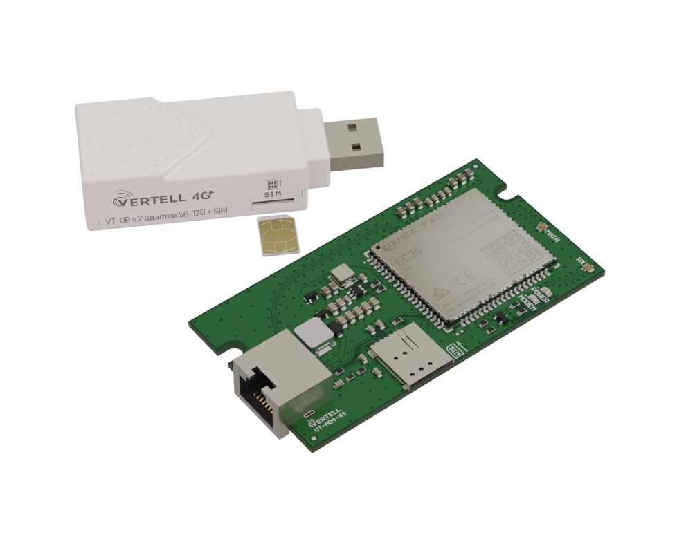 SIM-карта работает или в переходнике VT-UP v.2 + SIM, или в модеме VT-AD4-X4. Поддержка двух sim-карт не предусмотрена.